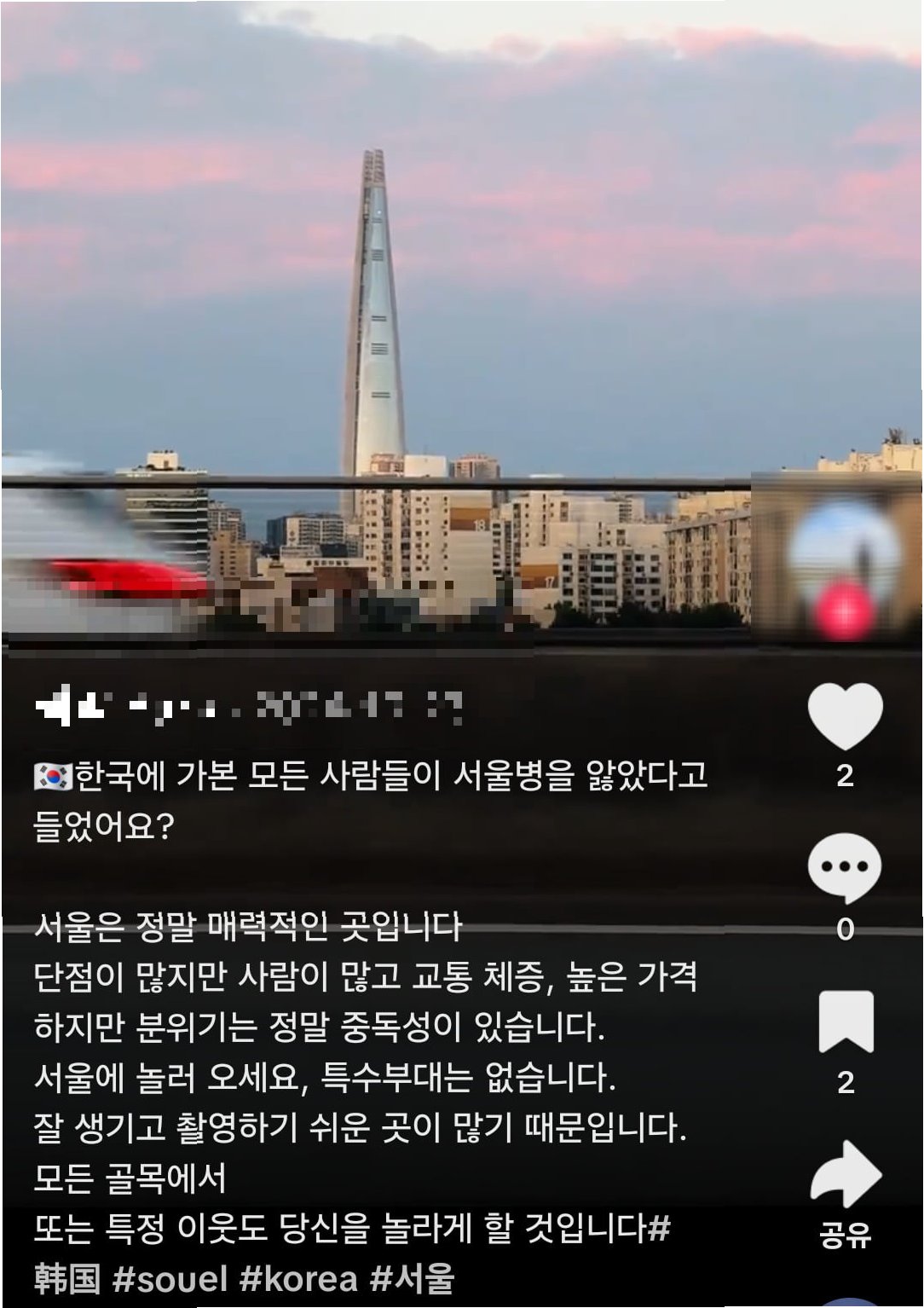 22일 33만 명의 팔로워를 보유한 한 중국의 한 인플루언서는 도우인을 통해 서울을 언급한 글에서 "K팝, 영화, TV, 게임 등 한국의 엔터테인먼트 산업은 아시아 최고 수준"이라며 "한국의 미적 감각과 가치관은 유럽이나 미국보다 아시아권 대중에게 더 쉽게 받아들여진다"고 평가했습니다. 해당 게시물에는 "서울 사람들은 법을 준수하고 정직한 삶을 산다", "진정한 엔터테인먼트 강국", "한국 드라마가 재밌다는 건 부정할 수 없으며, 나는 K드라마에 중독됐다", "한국에 다시 가서 열기를 느끼고 싶다" 등의 댓글이 이어졌습니다.