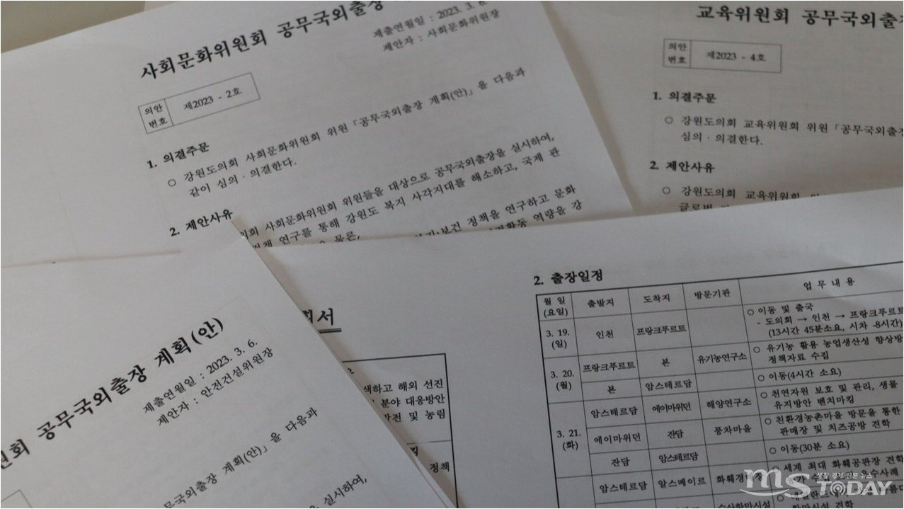 관광 일색의 연수 일정과 공무원 동행, 과도한 세금 낭비
