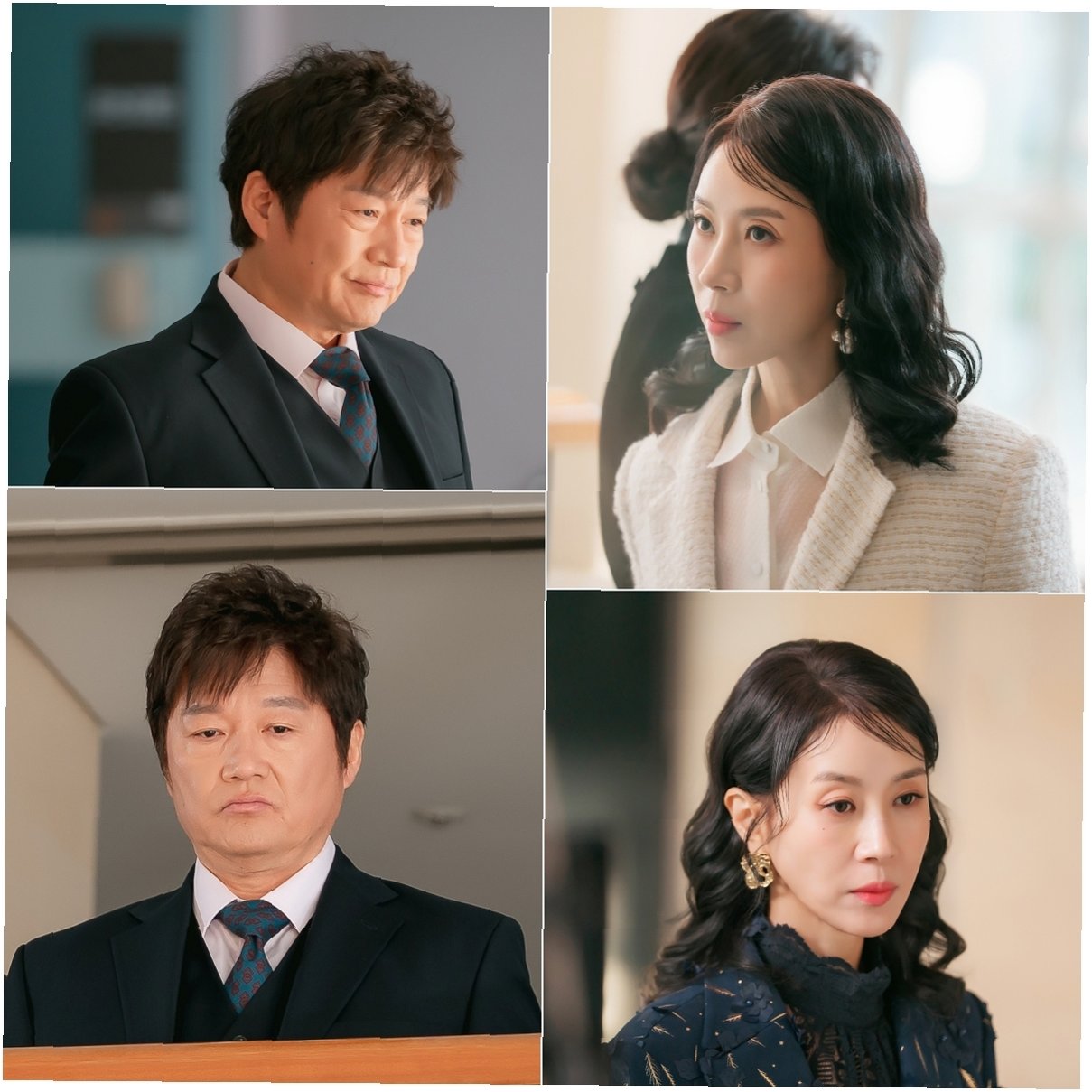 A.최재성 배우는 아델 그룹 회장 박태호 역을, 김희정 배우는 그의 아내이자 아델 갤러리 관장인 오정란 역을 맡았습니다. 두 사람은 각자의 야망을 위해 서로를 이용하고 비밀을 숨기는 부부로 등장하며, 극의 긴장감을 이끌어가는 중요한 축을 담당합니다.