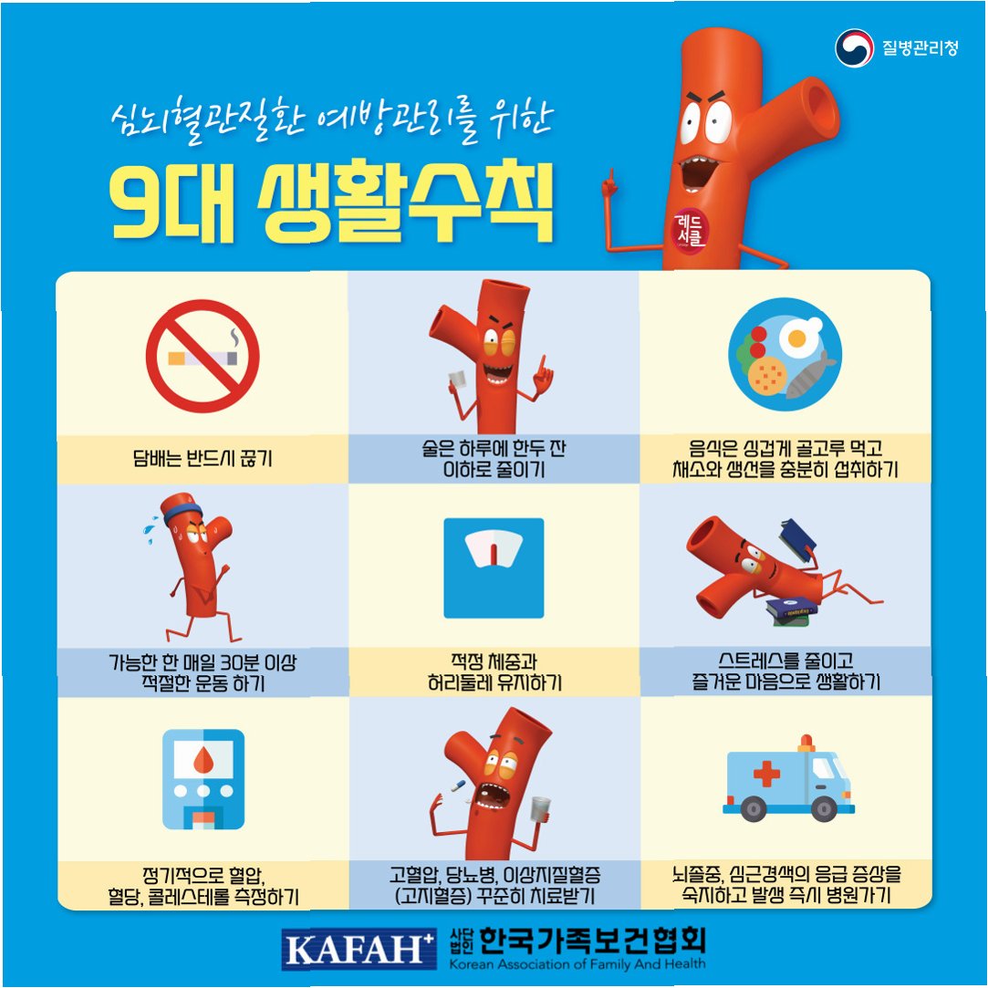 A.흡연은 혈관을 손상시키고 혈전 생성을 촉진하여 심뇌혈관 질환 발생 위험을 높입니다. 과도한 음주는 혈압을 높이고 심장 기능을 저하시킬 수 있습니다. 금연과 절주는 건강한 혈관을 유지하기 위한 필수 조건입니다.