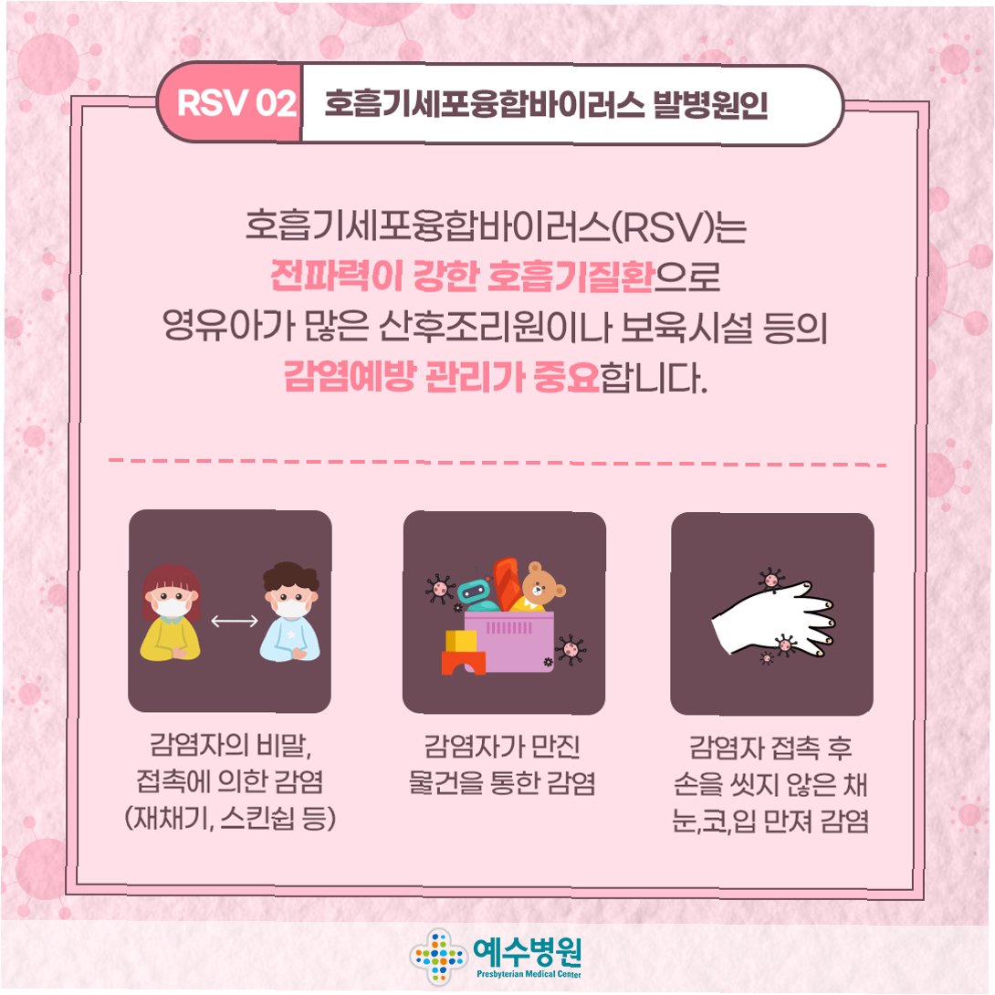 RSV 감염 예방을 위해서는 다음과 같은 노력이 필요합니다.