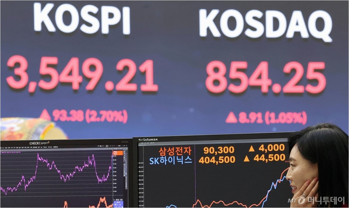 코스피, 거침없는 상승세: 종가 기준 최고치 달성!오늘, 코스피가 뜨겁게 타올랐습니다. 2.7% 급등하며 3,549.21로 장을 마감, 종가 기준 역대 최고점을 기록했습니다. 투자자들의 기대감을 한껏 끌어올리는 놀라운 소식입니다. 이러한 상승세는 단순히 숫자의 변화를 넘어, 시장에 활력을 불어넣고 투자 심리를 자극하는 중요한 신호로 해석될 수 있습니다. 긍정적인 경제 지표 발표, 기업 실적 개선에 대한 기대감, 그리고 글로벌 시장의 우호적인 분위기 등이 복합적으로 작용한 결과로 보입니다. 특히, 최근 몇 달간 이어진 완만한 상승 흐름을 넘어선 이번 급등은, 시장의 긍정적인 모멘텀이 강화되었음을 시사합니다. 코스닥도 함께 웃었다: 동반 상승의 의미코스피뿐만 아니라 코스닥 시장도 덩달아 상승하며 투자자..